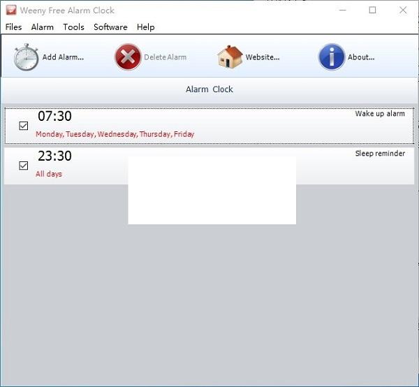 您可以设置多个警报,所有警报均显示在程序的主窗口中。为了创建新的警报,开发人员在程序中包含一些配置设置,例如时间配置,注释和声音。也可以在选定的期重复闹钟。