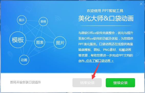 答:建议安装时关闭所有微软office组件,安装完成后重新打开。如果出现安装完成没有在菜单栏出现“美化”选项卡,关闭所有微软office组件重新打开。