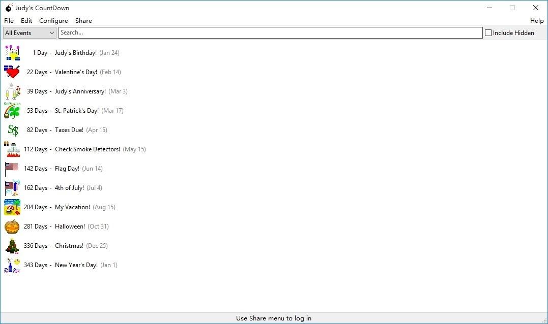 Judy’s CountDown是一个精致,有趣的程序,可以帮助您跟踪假期和生活中的其他重要事件。