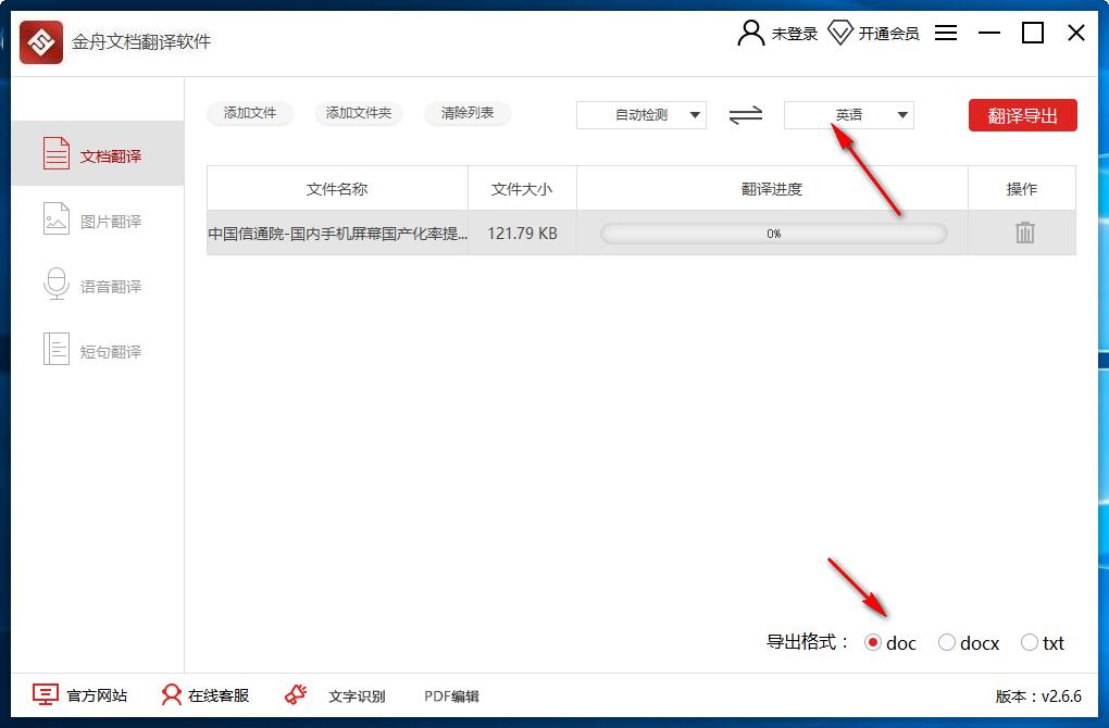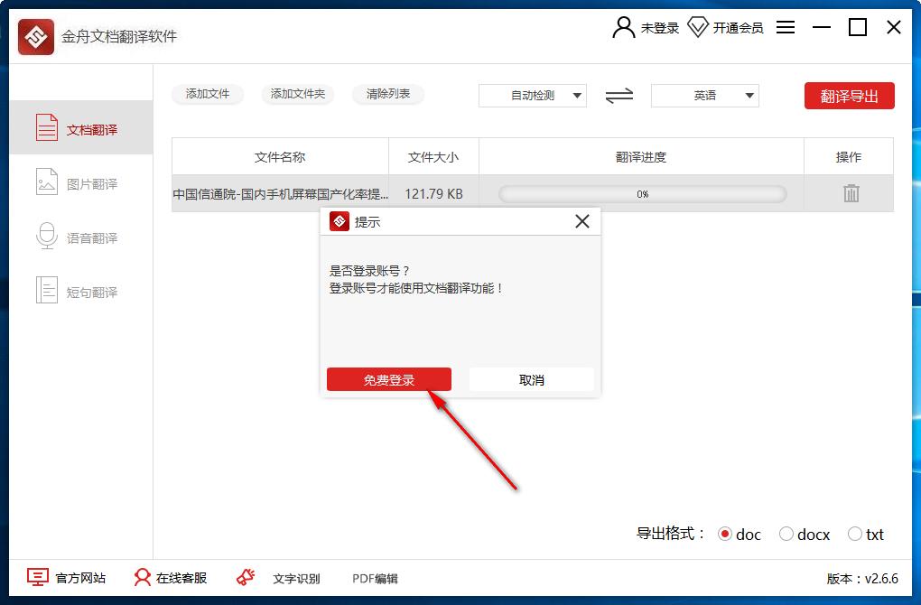 7、提示是否登录?登录才能使用文档翻译功能!