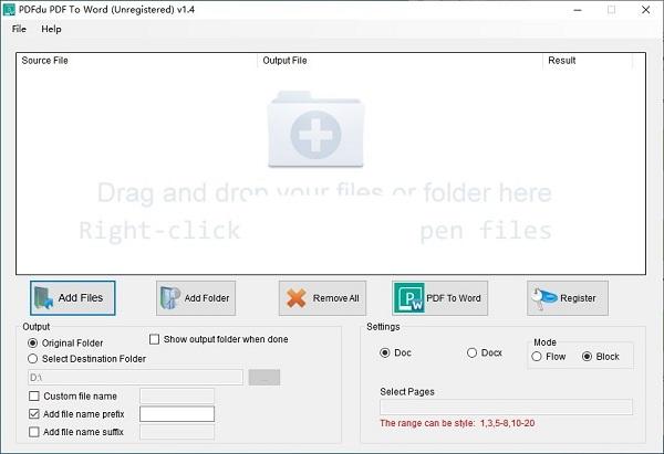 PDFdu PDF To Word Converter具有简单的用户界面,几步即可将PDF转换为doc或docx的Word文件。
