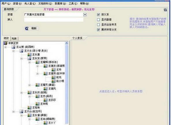 重复第二步输入其他族人和其父母资料。系统自动完 成树状图和其他输出资料。
