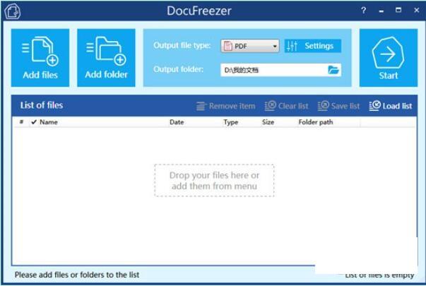 1、将文档转换为PDF:将文件拖放到DocuFreezer,选择PDF作为输出文件格式,单击“开始”。 DocuFreezer会自动将任意数量的文本文档,演示文稿和电子表格转换为PDF!