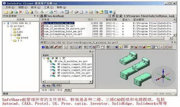 2、SafeShare能管理所有的三维CAD图纸,包括UG、Pe、catia、Inventor、SolidEdge、Solidworks等等—-这是高端PDM也做不到的。