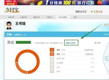 点击后会打开如下图的一个对帐窗口,点击“查看支出明细”,进入相关的页面。