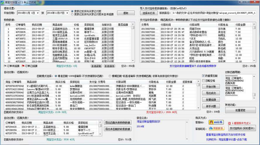 淘宝对账宝打破传统手动对账方式,让对账不在是一件乏味枯燥的事情,匹配度精准到百分百,本软件包含一键导入、一键批量插旗、全智能匹配等数个独家功能,配合手动节省对账时间百分之九十五以上,无需登录支付宝,安全可。此外批量插旗功能自动备注返款,让你一目了然,让一切变的如此简单。