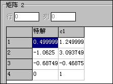 点击“计算”后,方程组的一组解出现在矩阵2中。第一列为一特解,其后的列组成一基解系。