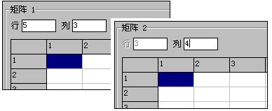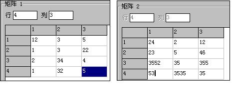 这便是选择了运行“矩阵乘法”后的效果。图中可以看到,矩阵2的行已经不能更改,并将自动与矩阵1的列保持同步,而且矩阵2的列仍能更改。运行后的结果将是一个与矩阵1行数相同,与矩阵2列数相同的新矩阵。根据程序的默认设置,运算后的输出结果将被发往矩阵1,覆盖掉原有的数据,并将矩阵2清空以便进行下一次运算。