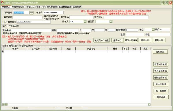 通用广告行业送货单发货单打印软件版是一款功能强劲、超实用的送货单发货单打印软件,通用广告行业送货单发货单打印软件版作简单,支持三等份和二等份打印,智能分页功能,通用广告行业送货单发货单打印软件最新版专为广告公司印刷行业平面设计公司打造。