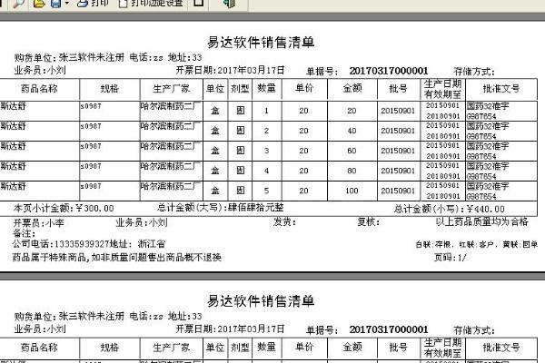 易达医药进销存单据打印功能介绍