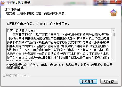 2.双击打开,进入山海鲸可视化软件界面,阅读安装许可协议,点击我同意