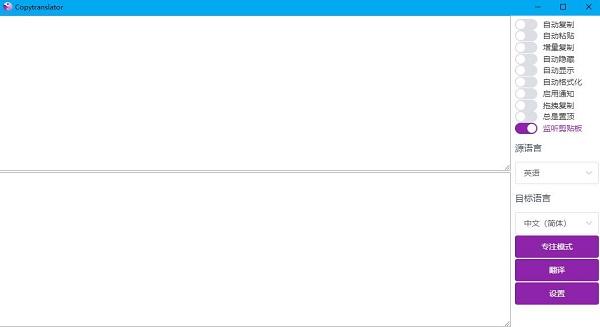 CopyTranslator版是一款功能强大、作便捷的快速翻译软件。CopyTranslator版支持几十种不同语言的互译,效率高翻译速度快,能够满足大部分用户常翻译需求。CopyTranslator界面简洁,可以对多段文字进行快速的翻译,只要是复制的文本就可以直接翻译,需要的小伙伴们赶快来下载资源库下载使用吧。