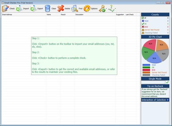 除了传统上,列表视图中显示结果,Email Checker P还通过计数和3D饼图进行可视化统计。更直观的是:在电子邮件地址期间,计数和3D饼图会实时更新。