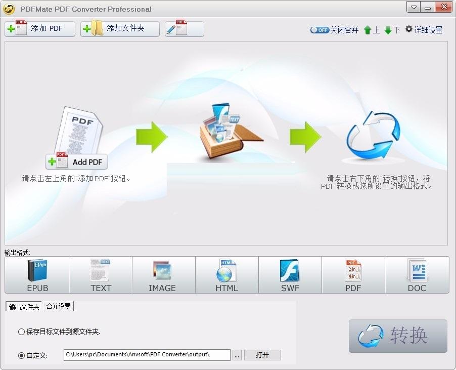 将PDF转换为EPUB,TXT,DOC,IMG,HTML和SWF。