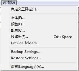 8.选项包括字体、颜色、配置、过滤器等选项,如图:
