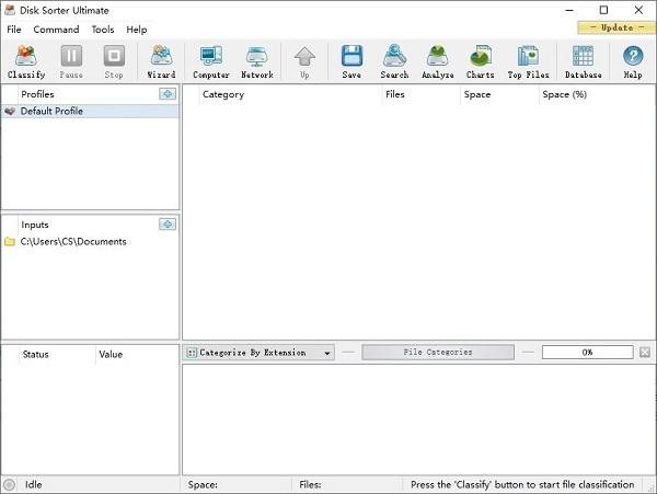 DiskSorter是一种功能强大的文件分类解决方案,可用于对磁盘,目录,网络共享和NAS存储设备中的文件进行分类,保存文件分类报告,将文件分类结果导出到SQL数据库,执行高级历史趋势分析作以及多种类型的文件管理文件类别的作。