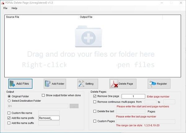PDFdu Delete Page版支持以下选项:页面范围,或者您可以指定要处理的页面列表。