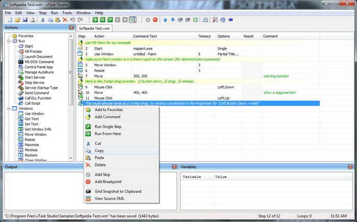 VistaTask 甚至可以编译整个任务到一个甚至可以在其它计算机上执行的可以被用于执行任务的一个单独的可执行文件(EXE 文件)当中.尽管该软件支持非常复杂的任务,然而该软件简单易用并且不需要学习任何新的脚本编程语言.