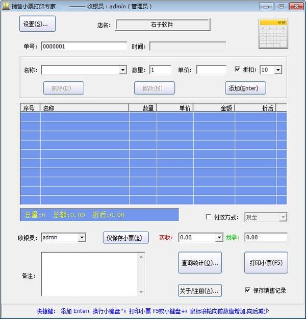 小票打印专家版是一款可以支持POS58热敏打印机,实现打印小票的软件。它功能强大,界面清爽、作简单方便。小票打印专家版能够自动期和票号、自动合计数量和金额、记忆商品名称并关联单价、可通过商品代码快速输入商品等。