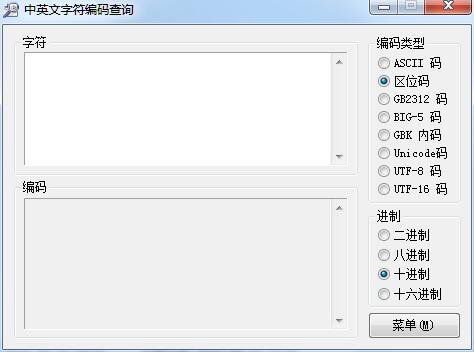 该软件能快速查询中英文字符的ASCII、区位码、GB2312 码、Big5 码、GBK 内码、Unicode 码、UTF-8 码和 UTF-16 码。体积小、效率高、使用方便、批量转换、即输即得和多进制显示等。