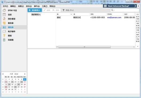 EssentialPim版是一款个人管理软件,能以电子化的方式保留您的。您所有的程、使命、记事、通讯录、登陆密码都保留在图形化界面中且方式简便。