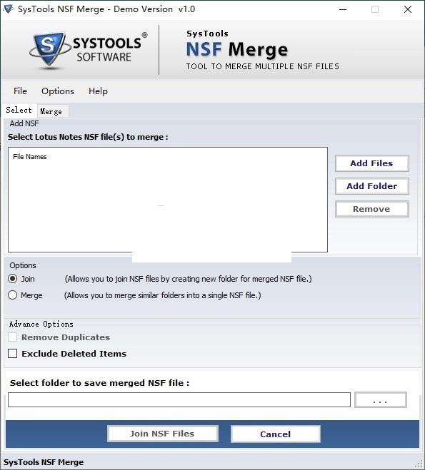 该工具将两个(或多个)Lotus Notes数据库合并到一个“公用”邮箱中。如果您有多个Lotus Notes档案,请使用SysTools NSF Merge软件合并NSF档案。