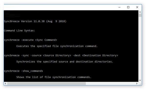 除了桌面GUI应用程序之外,power comr用户和IT专业人员还提供了SyncBreeze命令行实用程序,该实用程序可用于从shell脚本和批处理文件同步目录和/或执行预配置的文件同步命令。