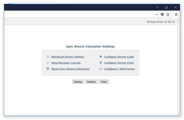 除了客户机GUI应用程序之外,SyncBreeze Server还提供了一个完整的基于web的管理界面,允许使用本地或通过网络的常规web浏览器控制、配置和管理一个或多个SyncBreeze。