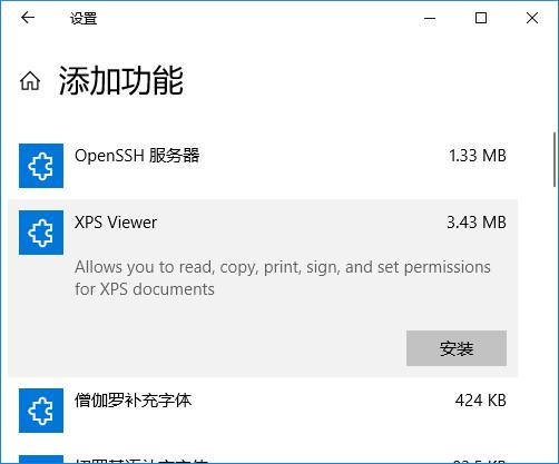 单击“ 添加功能”按钮。从列表中选择XPS Viewer。单击“ 安装”按钮。