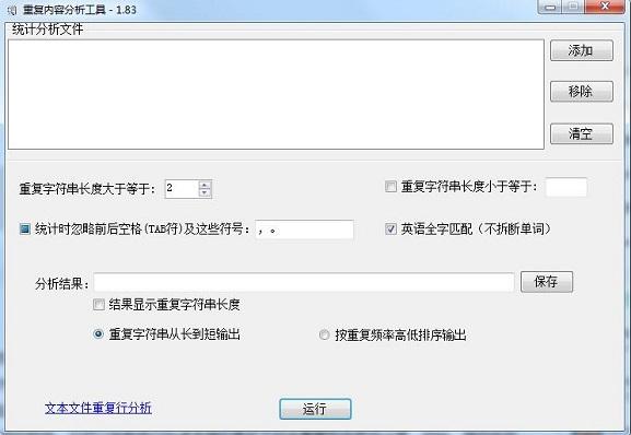 重复内容查找工具最新版是一款功能相当全面实用的内容查找软件,重复内容查找工具最新版软件还可以去掉文件中出现的句子,短语,相似的内容,大量重复词汇等等,方便大家整理文件,提取重要内容,重复内容查找工具版用户也可以根据自己的需要设置重复字符串的长度,以便更准确地找到重复的内容。