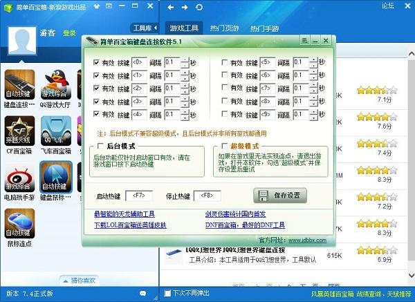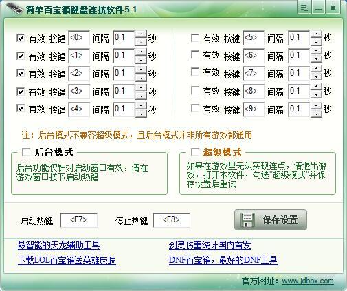 简单百宝箱键盘连按是网络上效果最好最安全的键盘连点器!键盘连按通常可用于游戏中技能连发、自动寻怪等,其最多支持设置10个按键,支持自定义设置启动热键以及连点的间隔时间。很多单调的作就将变得简单无比,也会让你的游戏体验更加完美。