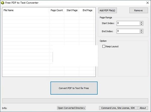 Free PDF To Text Converter版是一款作简单的PDF转TXT转换器,批量导入要提取文本的PDF文件,随后为每个PDF文件设置要提取文本的页码范围(默认为全部页面),还可以选择是否保留布局,最后即可一键执行转换。