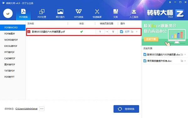转换效果没有影响,当然转换时间可能会长一些。目前转转PDF转换器采用了全新研发的转换技术,提供飞一般的转换效率。