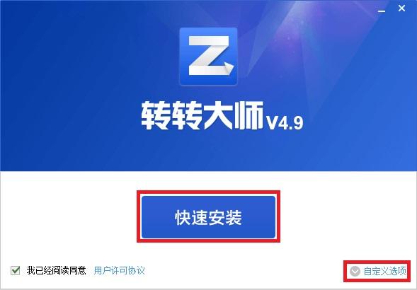 2、【自定义选项】中可更改软件的安装位置,选择完毕后点击一键安装