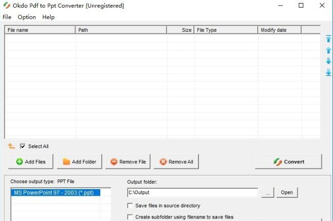 1、Okdo Pdf to Ppt Converter版可将PDF文件添加到软件上转换为PPT