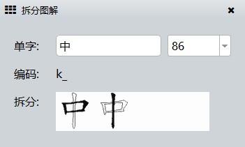 输入中文,即可显示86或98版本的中文汉字编码以及拆分图