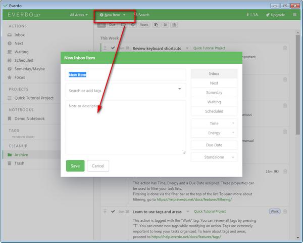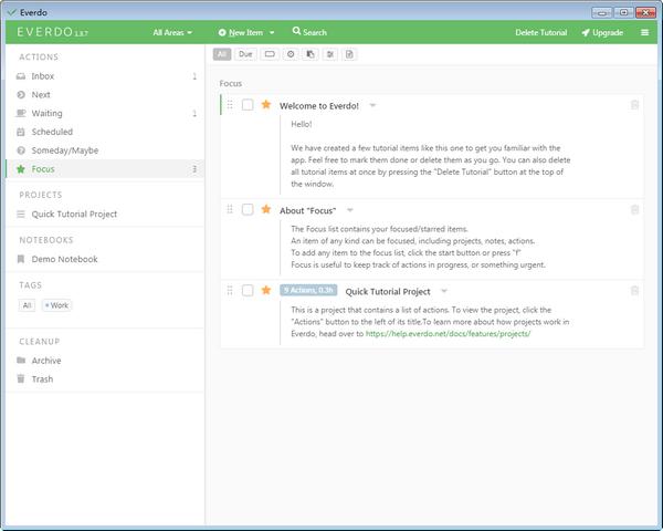 Everdo版是一款快捷实用的待办事项管理软件,Everdo版能够让用户对自己的项目、待办事项和任务进行有效的管理,Everdo版了多种好用的小工具,用户可以利用软件对自己的工作做一个分类和总结,软件拥有支持GTD的所有功能,因而可以大大地简化工作流程,软件是一款基于强大的云服务功能的软件,因而能有效地保障数据安全。