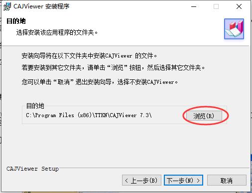 4、软件默认安装位置为“C:/Pgram Files (x86)/TTKNCAJViewer 7.3/”,点击“浏览”可以自主选择其它位置安装