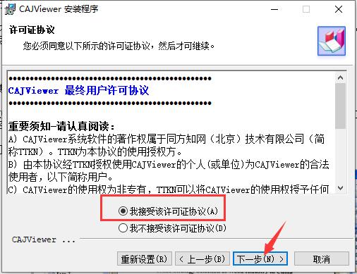 2、仔细阅读最终用户许可协议,勾选”我接受该许可证协议”,点击“下一步”继续