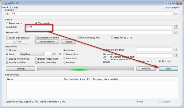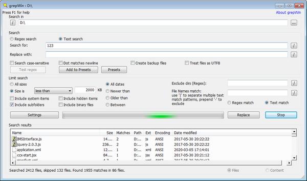 2、一旦启动,grepWin允许您自定义搜索或替换在许多方面。