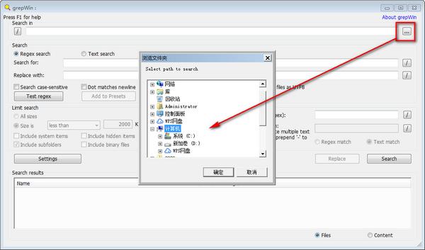 这允许做更强大的搜索和替换,为了确保轻松选择搜索文件夹,grepWin增加了一个进入上下文菜单外壳。