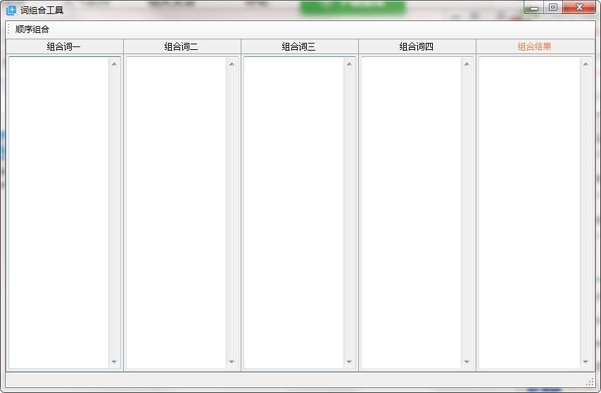 词组合工具是一款非常简单的关键词组合生成工具,在网站中,关键词的选取和质量与网站的浏览量钩,因此关键词的选取是至关重要的,不少用户会自己进行组词,但有时候一个词语就有多种组合方式,如果通过人力自行组合使用,会非常耗费时间,并且组合的关键词或许还会有遗漏;因此今天向大家推荐这款简单好用的关键词组合工具,该软件拥有四个字词输入框,从左到右输入相关的字词之后一键就可以将这些字词按照顺序组合起来,不放过任何一种的关键词的组成,能够提高用户的工作效率。