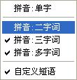 打开系统菜单上的形码混输,如下图,选择您需要的选项,建议不要选择拼音单字和二字词,以免产生过多的重码。