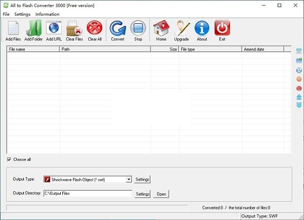 1、启动All to Flash Converter 3000,进入如下所示的软件主界面。