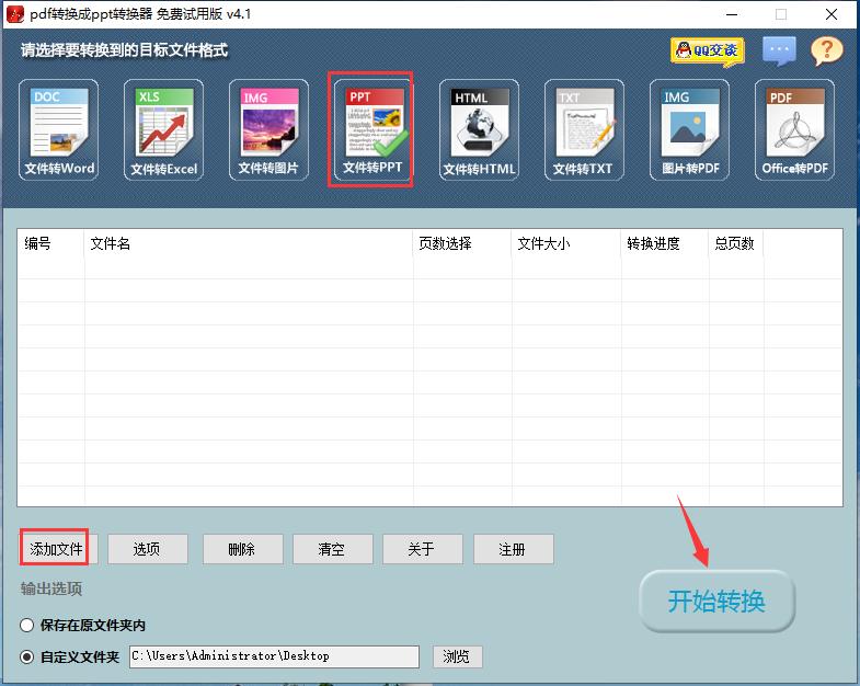 选择【文件转PPT】,点击【添加文件】,选择好文件后,点击【开始转换】就可以了