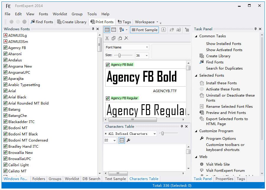 可以轻松管理程序任何视图中显示的任何字体。您可以对字体进行排序,过滤,预览字体,复制,移动,删除字体文件,激活或停用字体,将字体添加或链接到字体组(集)。该程序可以控制位于Windows Fonts和Ponts文件夹(由Adobe Type Mar使用)中的字体,因此您无需像某些字体管理器所需的那样从标准文件夹中删除字体。