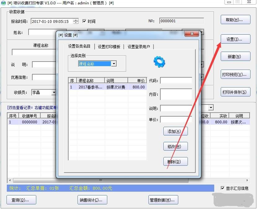 石子培训收费打印专家使用说明