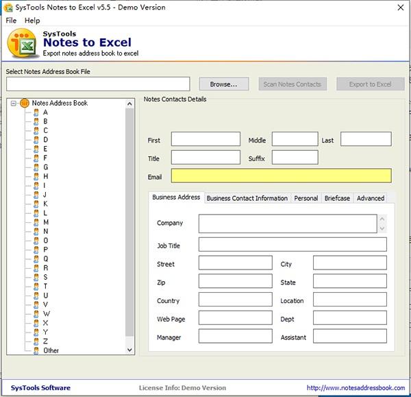 SysTools Notes to Excel -Notes通讯簿转换工具使用户可以将Lotus Notes通讯簿(names.n)转换为MS Excel文件。 软件只会将Lotus Notes联系人转换为MS Excel文件。 SysTools Gup屡获殊荣的Lotus Notes通讯录转换工具现在更快,更准确,并且允许您将便笺联系人导出到Excel文件。