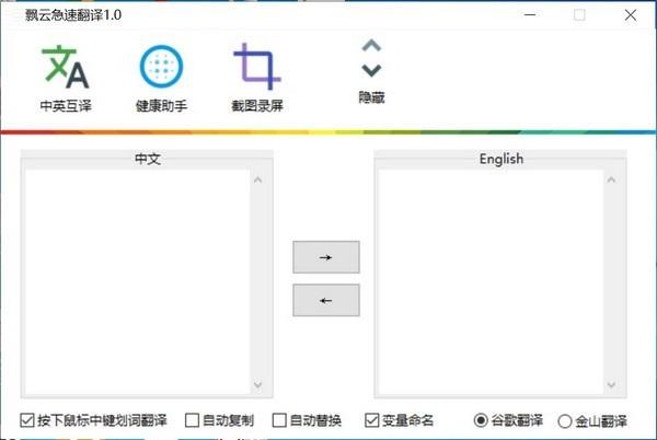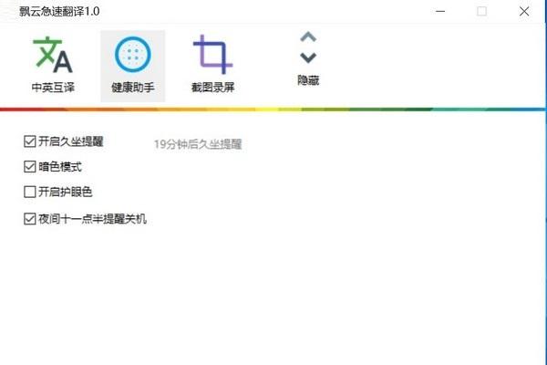 飘云急速翻译正式版是一款作速度快、翻译精准的翻译软件,飘云急速翻译正式版拥有丰富的功能,支持中英文互相翻译,可以自动识别翻译,连续翻译,支持划词翻译,支持截图录屏,飘云急速翻译还拥有健康助手小功能,提醒用户喝水或休息等。