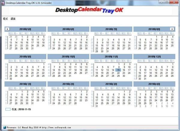 Desktop.Calendar.Tray.OK版是作简单功能实用的桌面历,该软件可以让用户记录每天的重要事项,计算一个期与当天的时间差。而且Desktop.Calendar.Tray.OK下载不需要安装,打开即可使用。